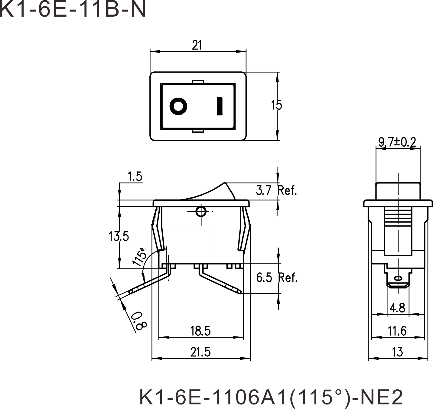 K1-6E series are one standard type rocker switch, optional with Protection Cap for dustproof and waterproof, or with inner dustproof structure, commonly for use in portable power-tools such as Hand Sanders, Die Grinders, Electric Nailers, Laser Actuators, etc. Also for used in small Home appliances and office equipments, such as Reading Lamps, Electric Fans, Printers, Game Players, Computer Power-supplys, Power Sound Box, etc.