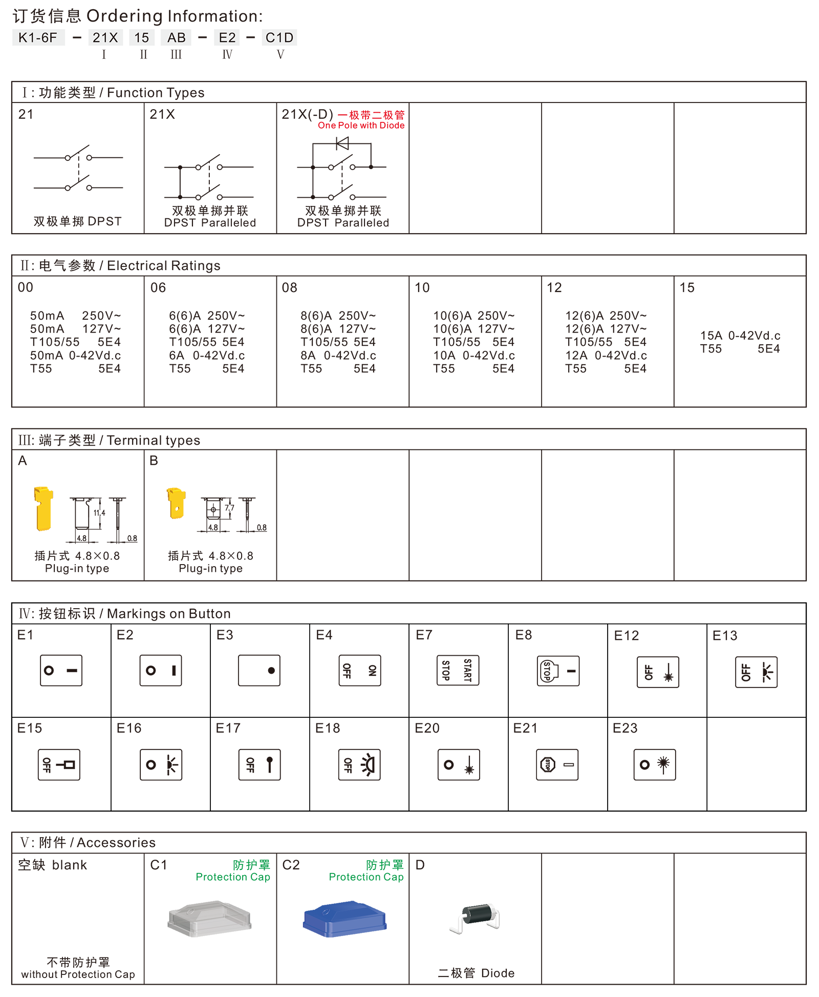 K1-6F series are one standard type rocker switch, optional with Protection Cap for dustproof and waterproof, commonly for use in small Home appliances and office equipments, such as Reading Lamps Electric Fans, Printers, Game Players, Computer Power-supplys, Power Sound Box, etc. Also suitable for small portable power-tools, such as Sanders, etc.