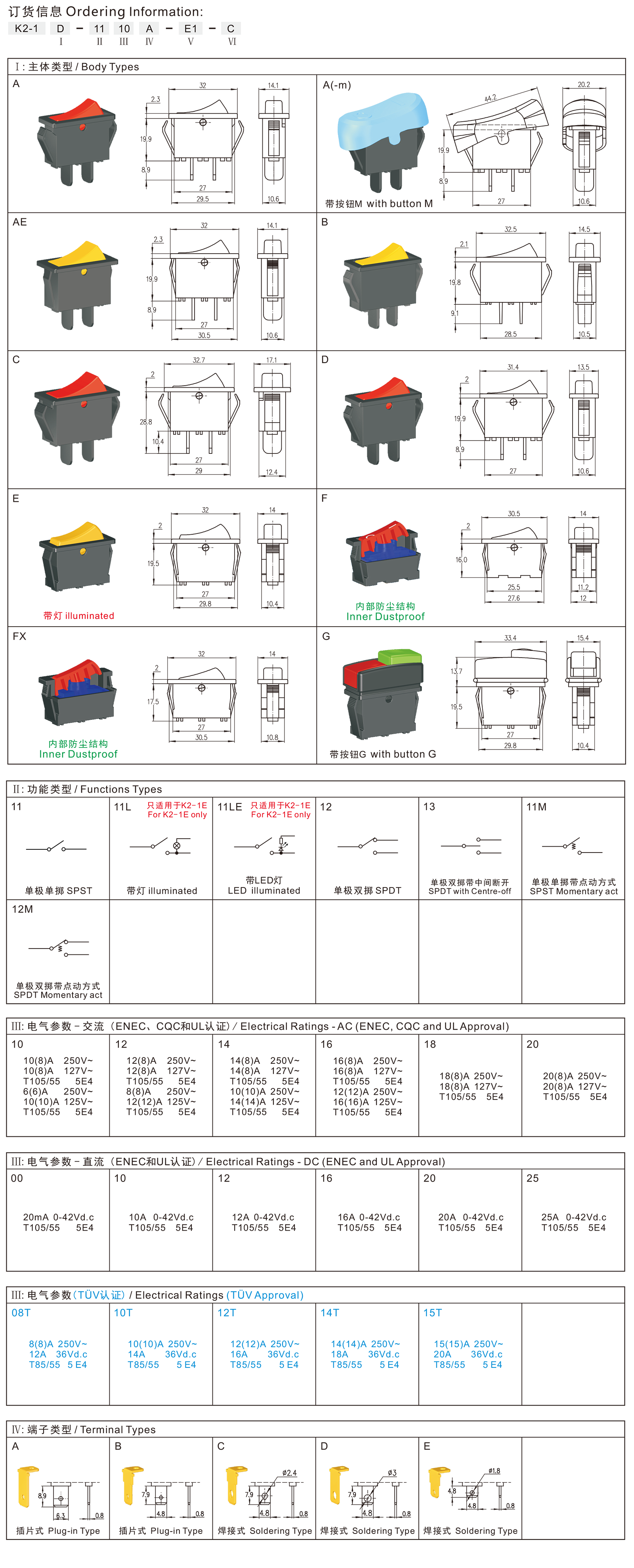 K2-1 series (Dustproof) Rocker Switches