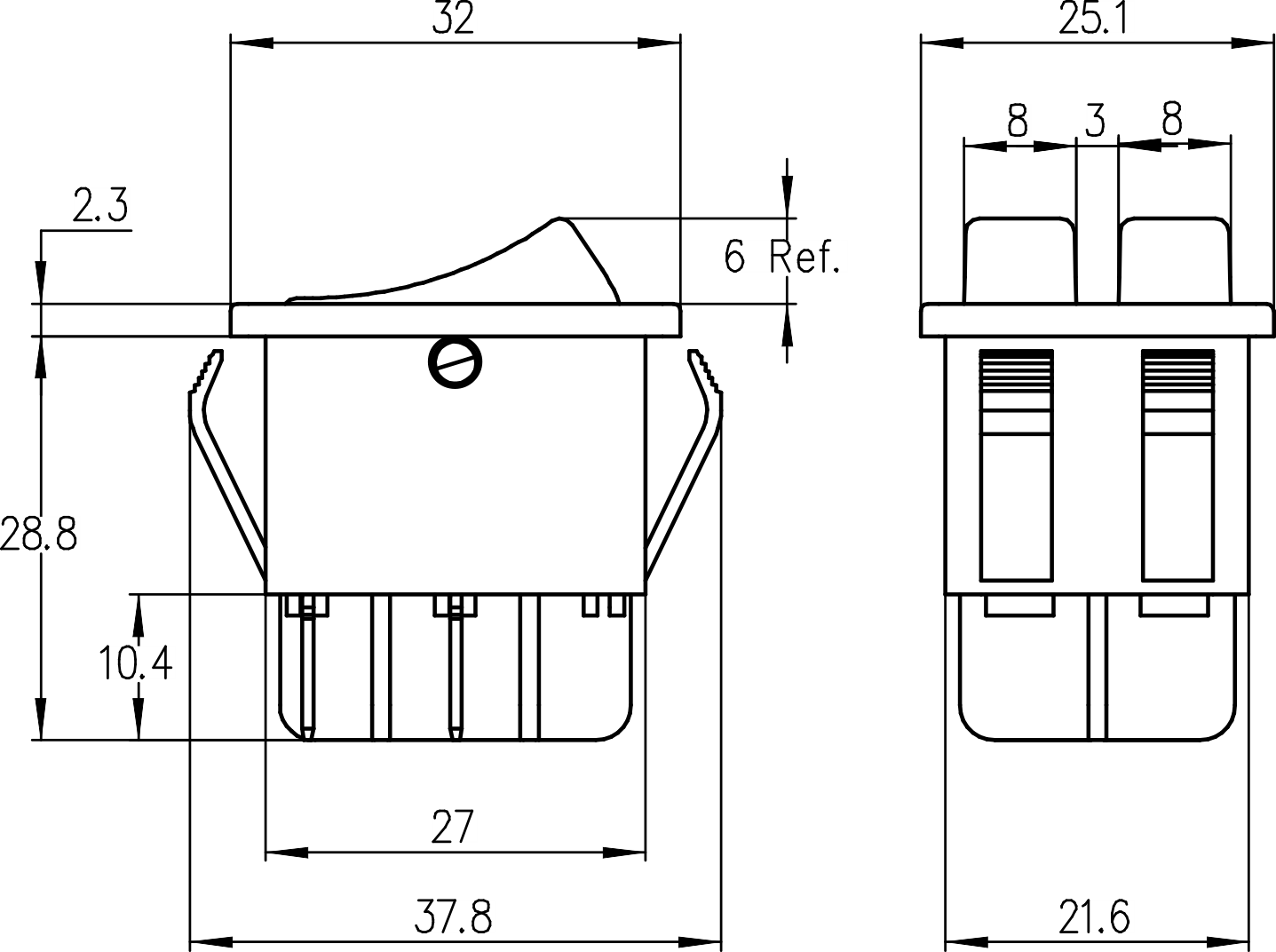 K2-1x2 series are standard type rocker switches, commonly for use in small Home appliances and office equipments, such as Electric F ans, Drinking Machines, Electric Heaters, etc.