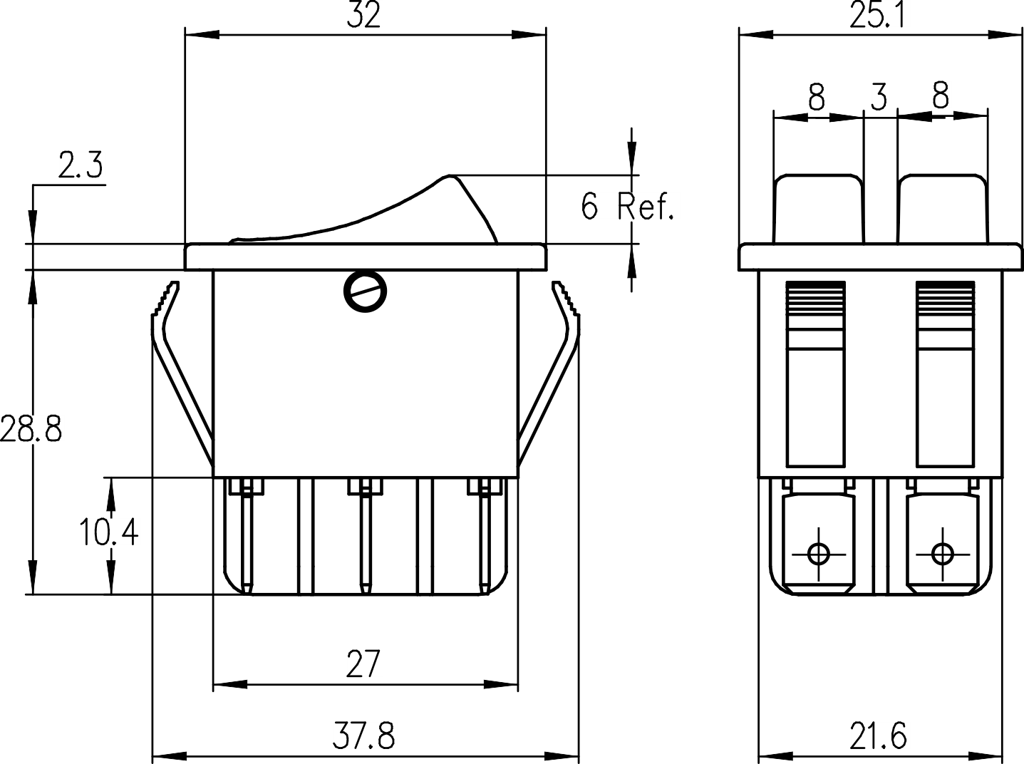 ◆K2-1x2 series are standard type rocker switches, commonly for use in small Home appliances and office equipments, such as Electric F ans, Drinking Machines, Electric Heaters, etc.