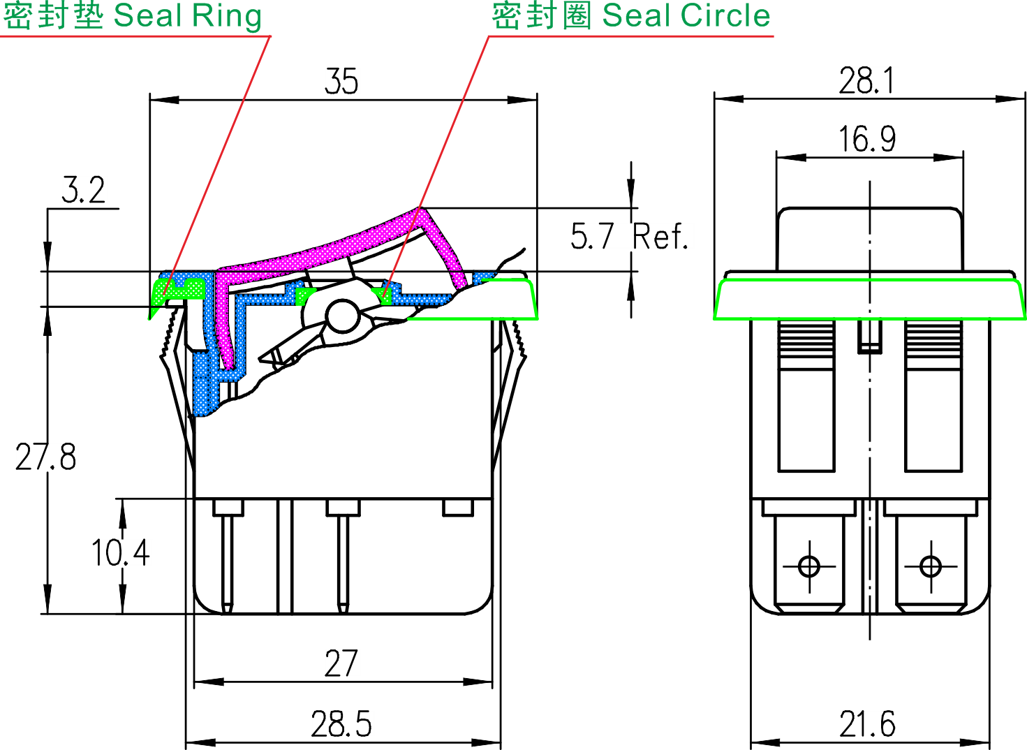 K2-2 series (Dustproof and Waterproof) Rocker Switches