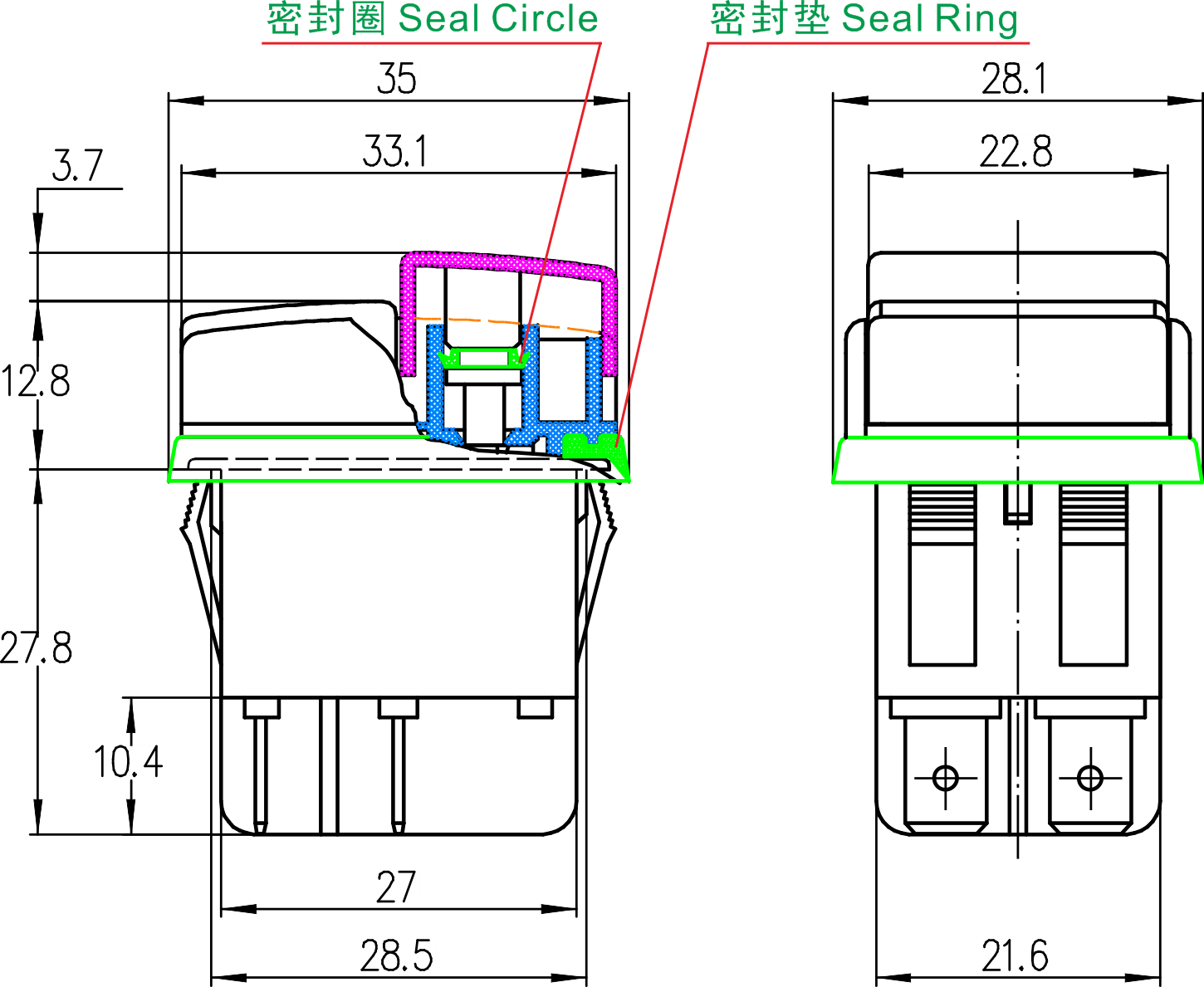 K2-2 series (Dustproof and Waterproof) Rocker Switches