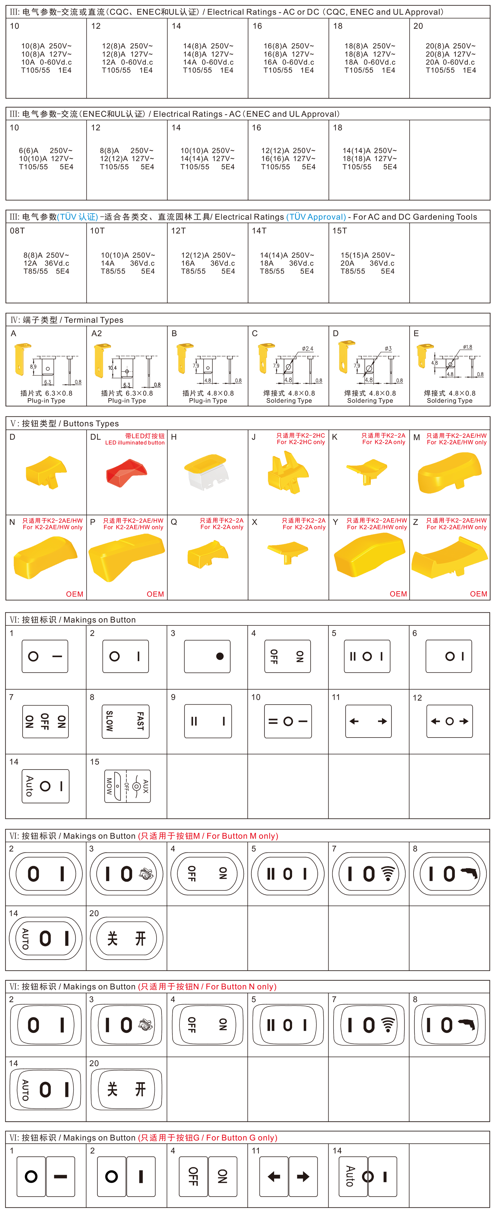 ◆K2-2 series are standard type rocker switches, optional many kinds of types, optional with Protection Cap for dustproof and waterproof, optional with Inner Protection Structure for dustproof and waterproof, commonly for use in power tools, gardening tools and cleaning appliances such as: Table Saws, Bench Grinders, Electric Lawnmowers, Cutting Shredders, High Pressure Washers, Dry and Wet Vacuum Cleaners, etc. Also for used in all kinds of Home Appliances, Testing Equipments and Office Equipments, etc.