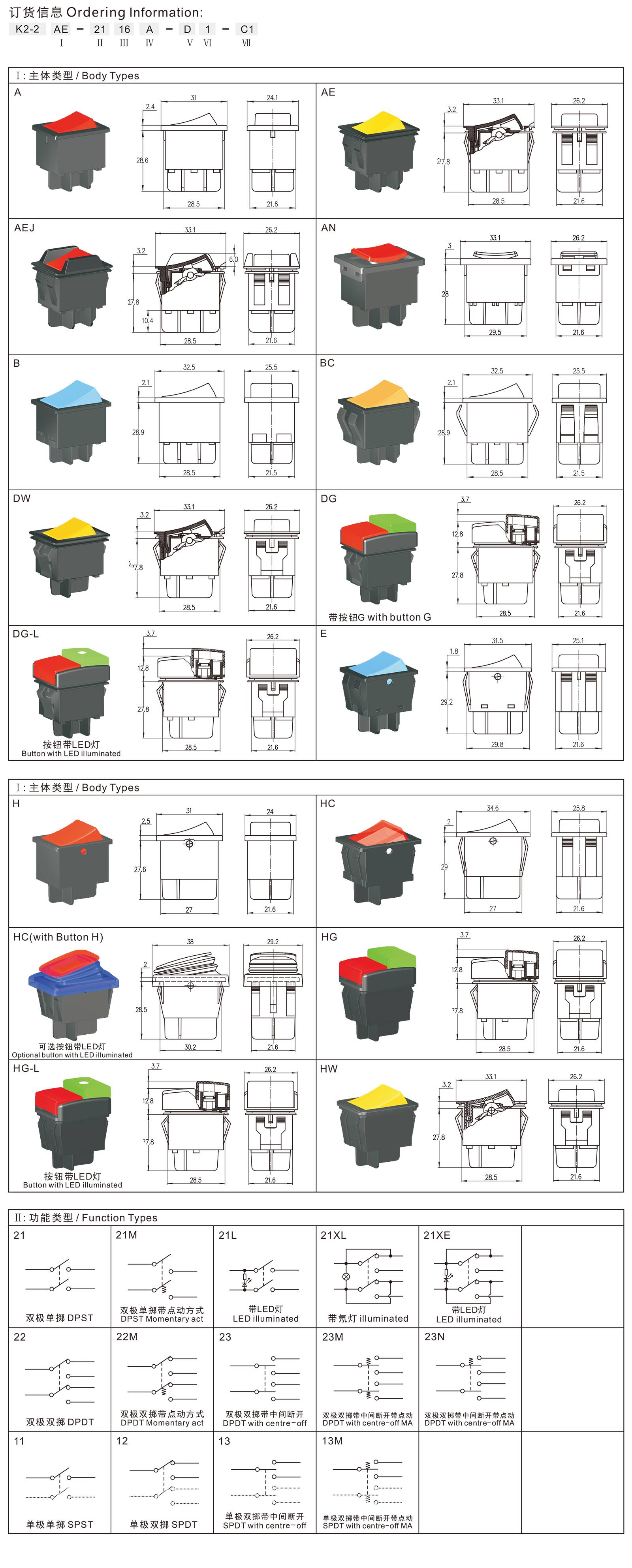 ◆K2-2系列是一款标准型的跷板开关,也通称船型开关、波形开关等,有多种款式可以选择,可选带防护罩实现防尘防水,也有内部防尘结构来实现防尘防水,用途极广,广泛应用于各类电动工具、园林工具和清洁器具,如:台锯、台式砂轮机、电动割草机、树枝粉碎机、高压清洗机、干湿两用吸尘器等,也同样适用于各类家用电器、仪器及办公设备等。