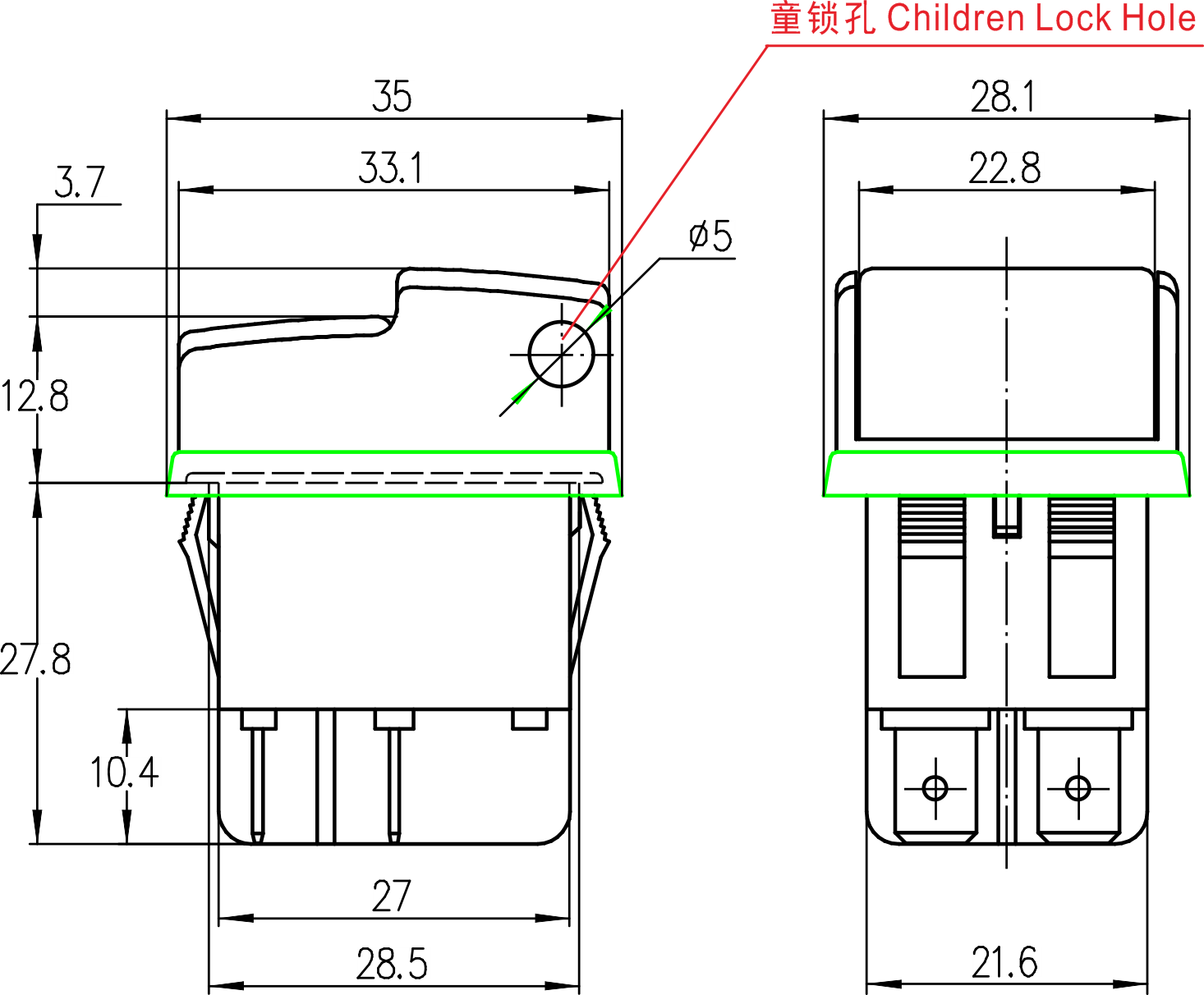 →插片端子 Plug-in terminals 4.8×0.8mm
