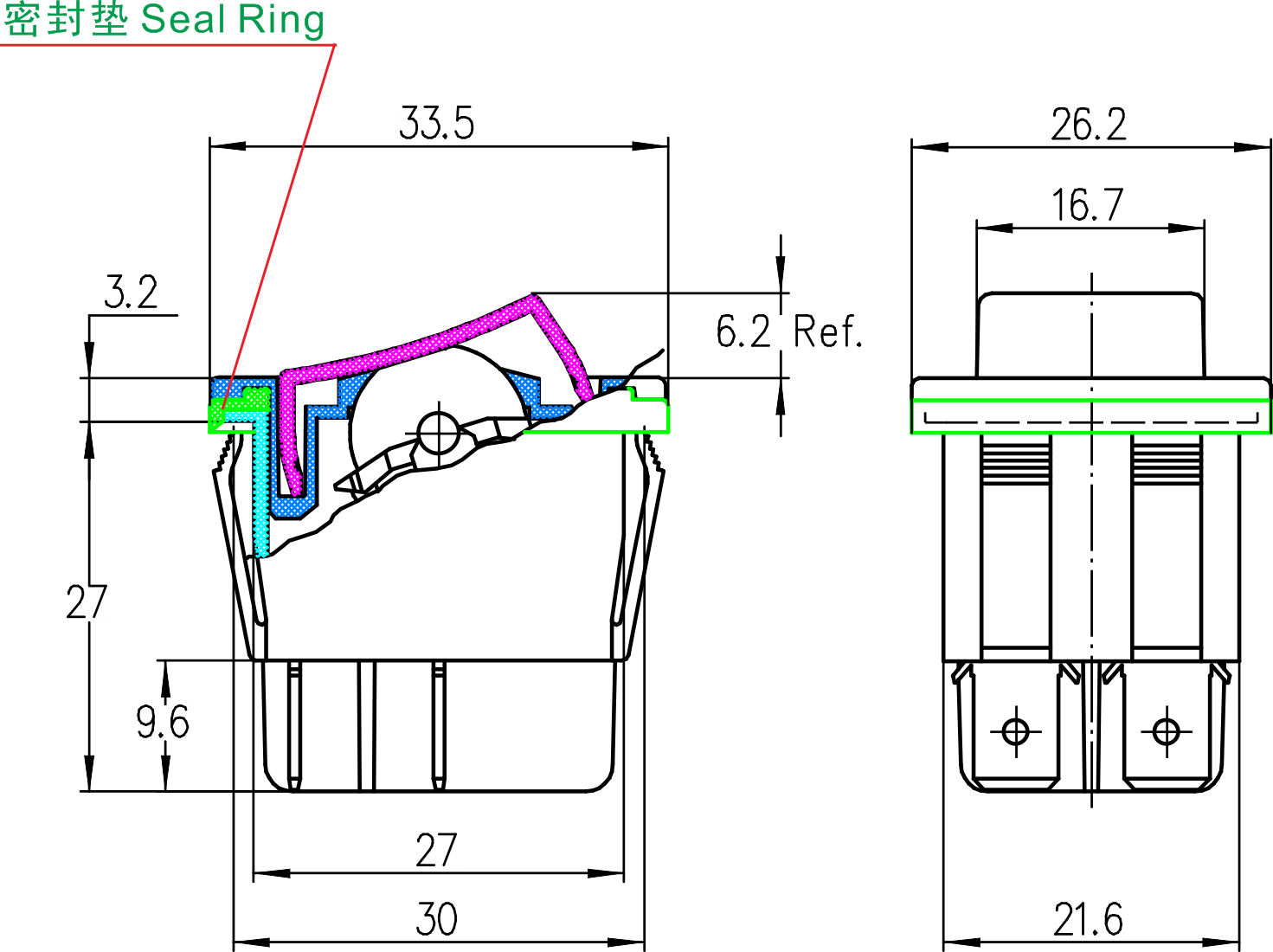K2-2 series (Dustproof and Waterproof) Rocker Switches