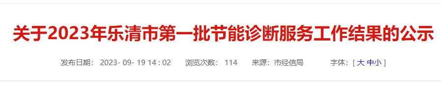 各相关企业、服务机构: 根据《乐清市进一步推动工业经济高质量转型发展若干政策》(乐政发〔2022〕6号)文件要求,乐清市经信局组织开展了2023年第一批节能诊断服务工作。经服务机构节能诊断、材料申报、专家函审、公示等程序,确定了第一批节能诊断服务工作结果,现予以公布。 附件:2023年乐清市第一批节能诊断函审结果汇总表