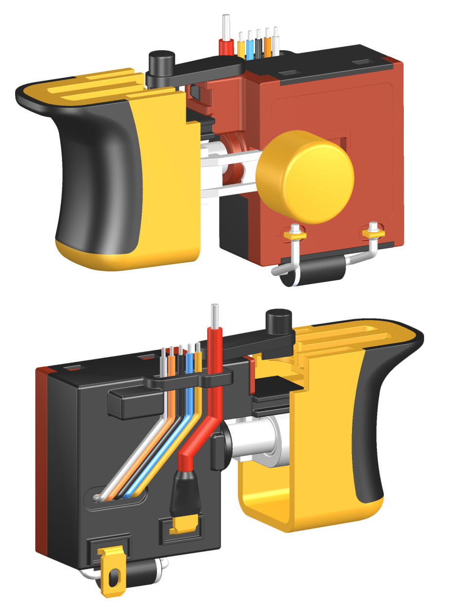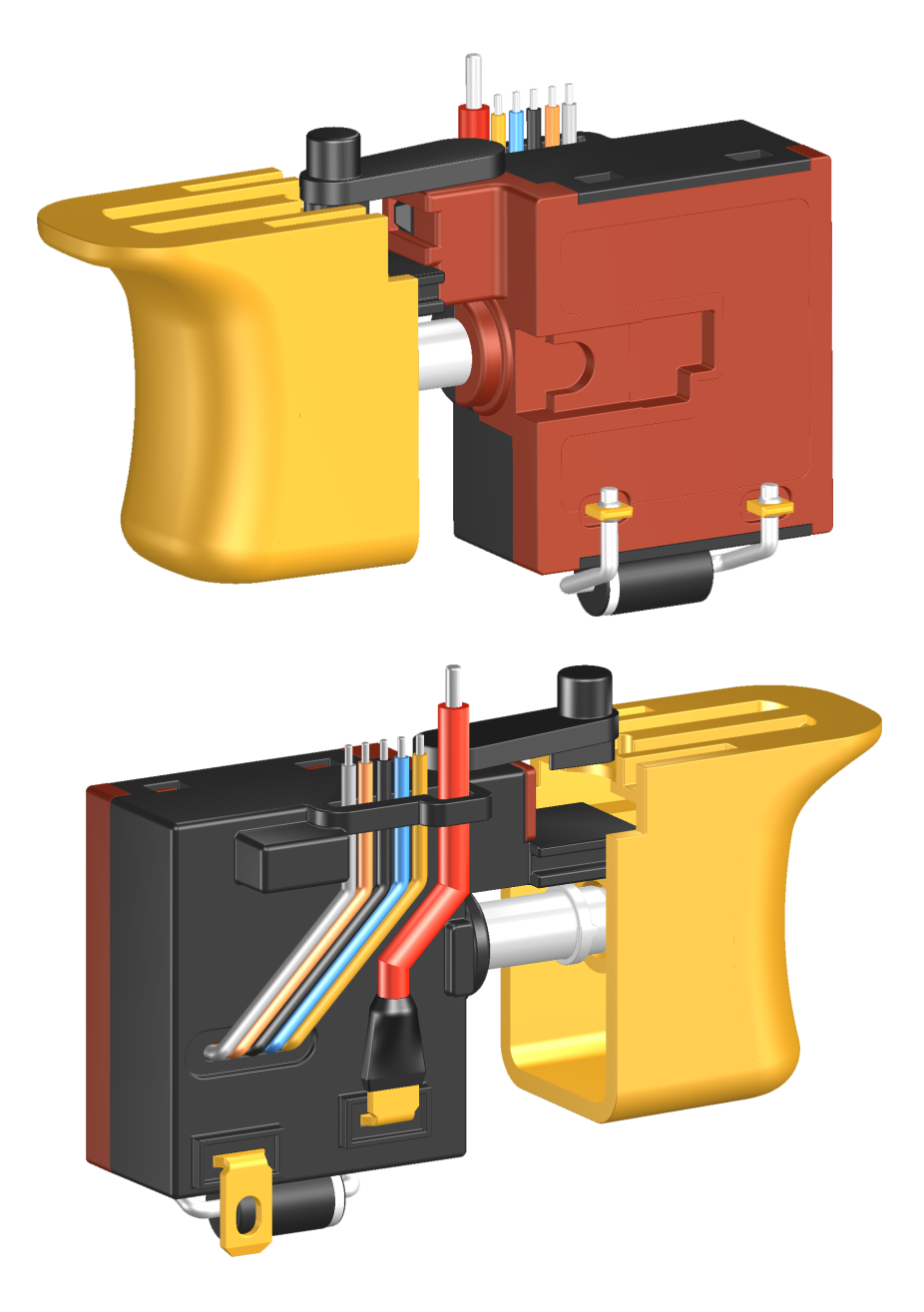 我司主要产品:微动开关、跷板开关、按钮开关、扳机开关、调速开关和电位器开关等各类交、直流器具开关和各类交、直流线路板模块,应用于交、直流电动工具、电动园林工具、清洁器具、家用电器和小型机床等行业。 Our company main products: micro switch, rocker switch, push button switch, trigger switch, speed switch and potentiometer switch and other kinds of a